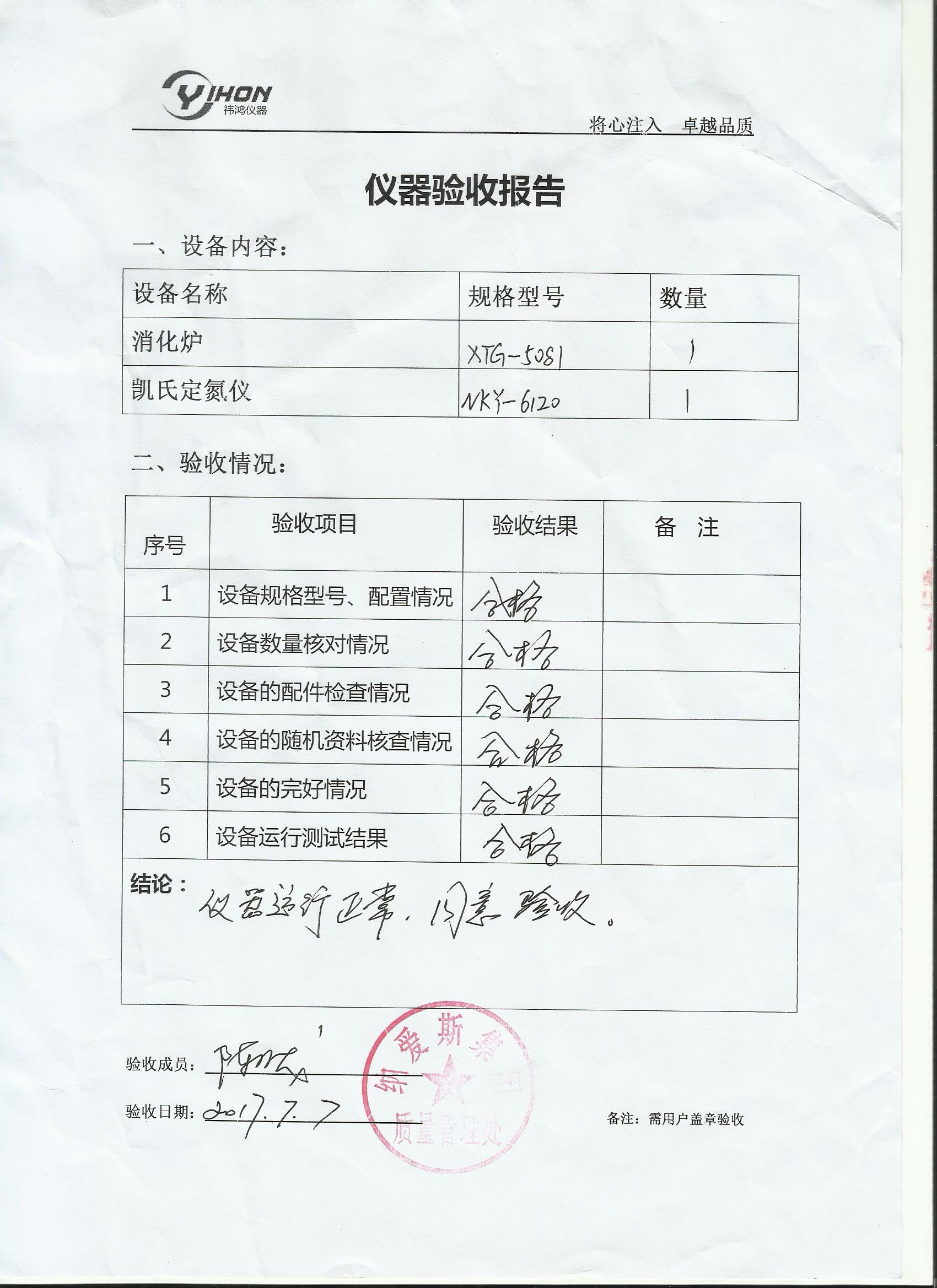 全自動凱氏定氮儀                                                       紅外消解儀                                          設備驗收報告