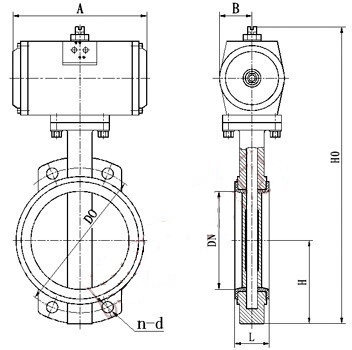上海蝶閥D671F氣動(dòng)四氟蝶閥外形及連接尺寸: |