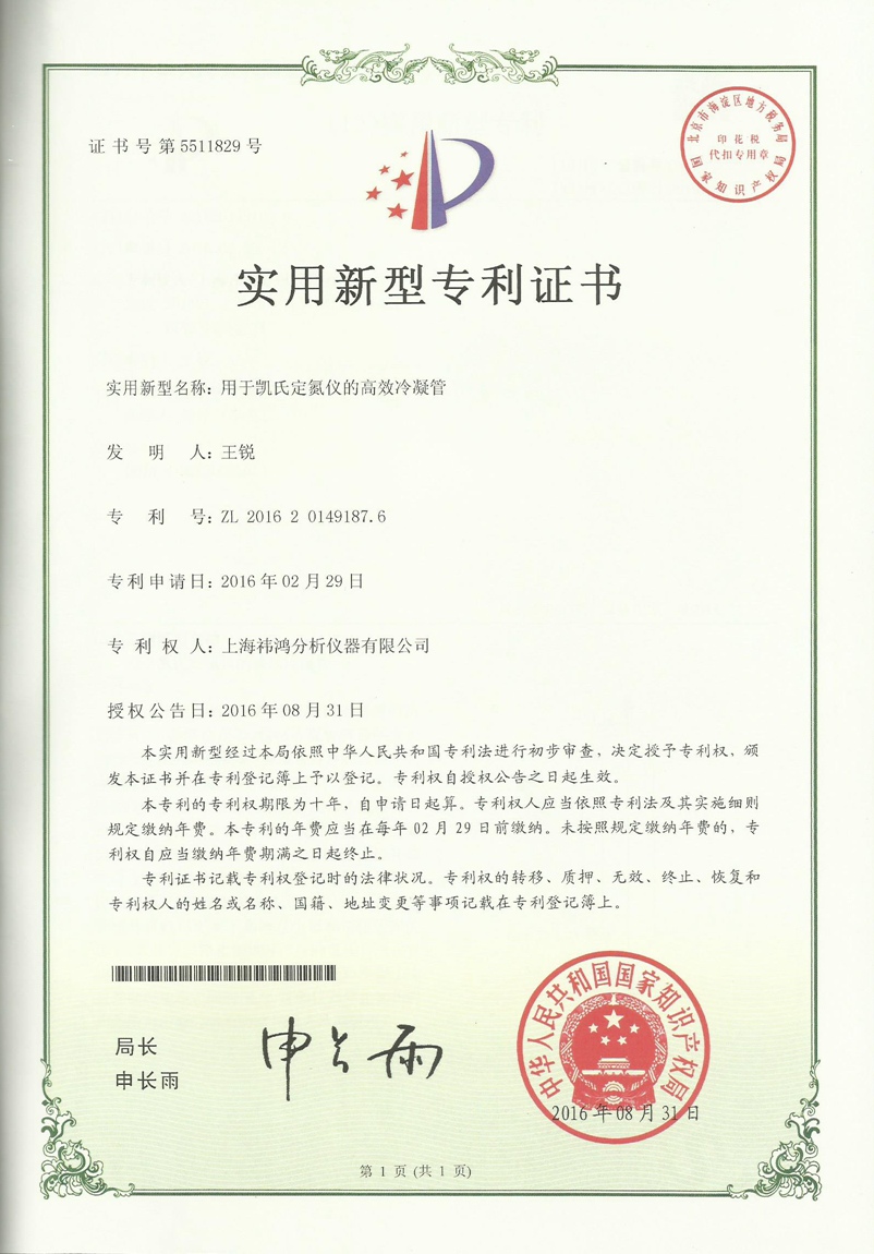 熱烈祝賀上海祎鴻凱氏定氮儀再添兩項技術專利